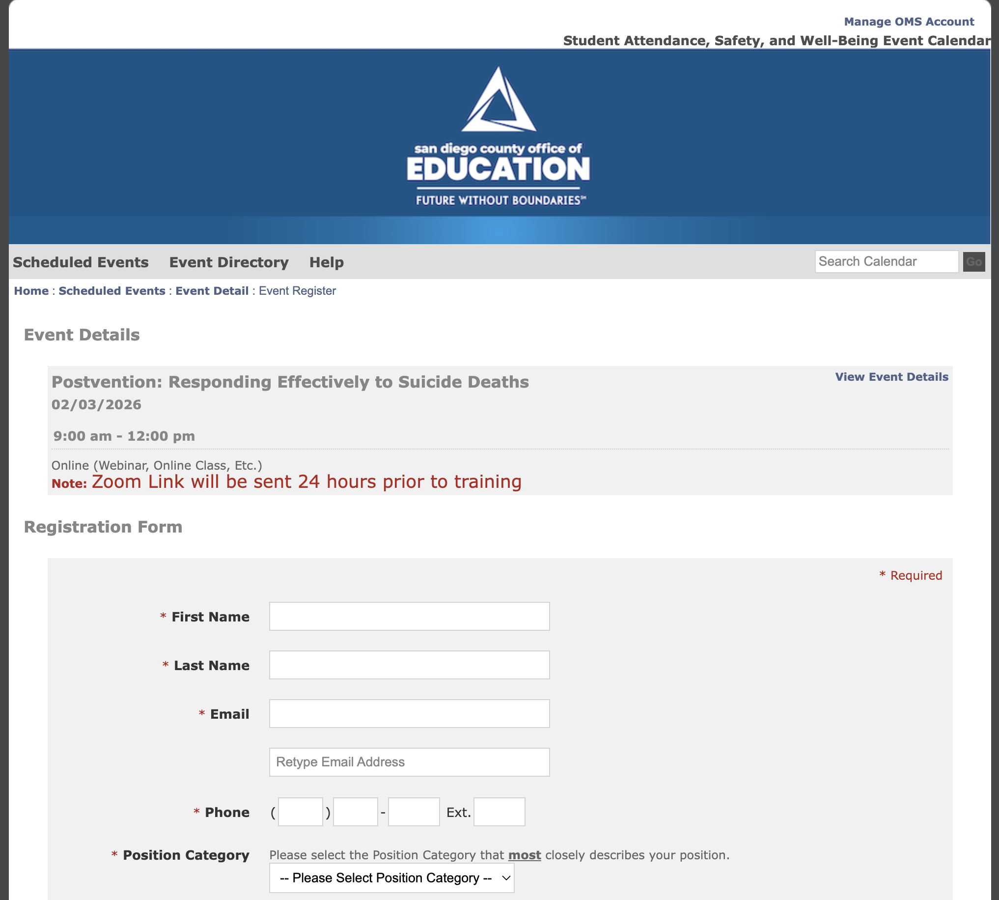 Time: 3:00pm-8:00pm How: Virtual via Zoom Instructions: Thank you for your interest in Youth Mental Health First Aid! The information collected in this form will be shared with your assigned YMHFA Instructor and the California Department of Education (CDE) to support your training experience. After submitting this form: You will not receive an automatic email confirmation. Your […]